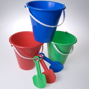 Sand Siftin' Fun Build yourself a luxury sand castle with these beach toys. This pail and shovel set will get you started! Set includes one pail and one shovel. Pail is 8" tall. Shovel is 7.25" long Made of plastic. Assorted colors of blue, red, green, and purple. These pail and shovels are perfect party accessories for your corporate picnics, summer barbecues, or beach parties. Part of Favors, Toys, Gifts > Beach Toys