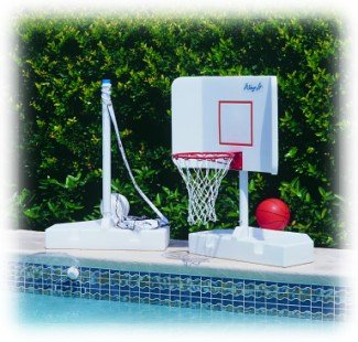 Shop for Volleyball from PoolToySource.com! What We Like About the Swimming Pool Basketball and Volleyball Combo SetSwitch from gorilla dunks to super spikes in seconds. Thanks to the latest advance from the engineers at Pool Shot a single person can quickly clip the volleyball net onto the Wing-It Basketball Game without even getting out of the pool. A heavy-duty volleyball net adjusts from 12 to 20 feet long. A waterproof vinyl basketball and volleyball are included. Just fill the rugged molded polyethylene bases with water for a sturdy support that anchors the net against the fiercest spikes. These bases are immune to rain snow extreme weather conditions and sunlight and can be left outside year-round. Or simply empty the water for easy transport and storage.